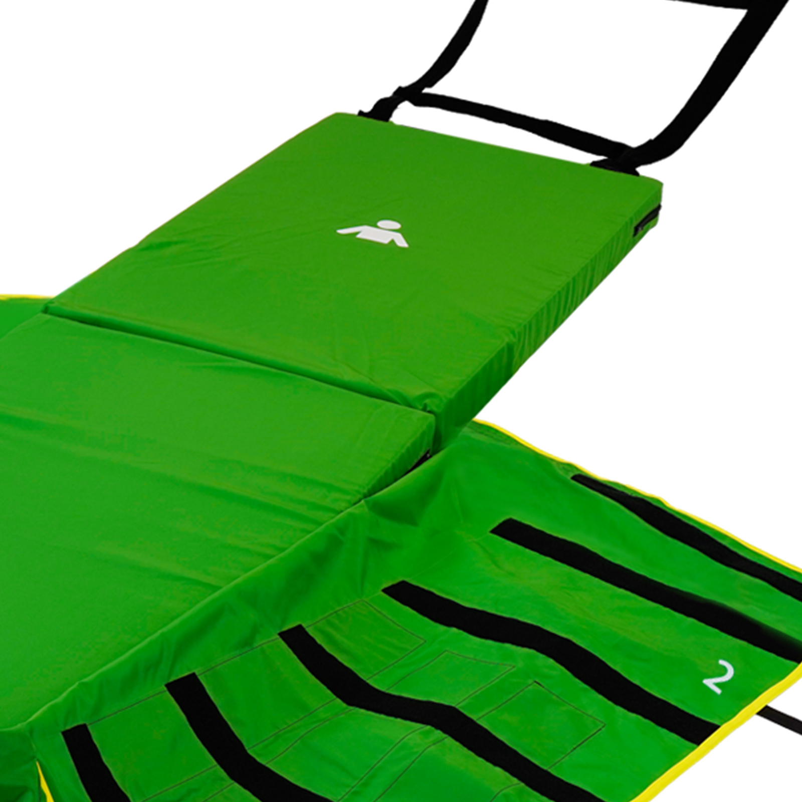 Materac posiada pasy i klapy zabezpieczające osobę ewakuowaną. - Elementy odblaskowe